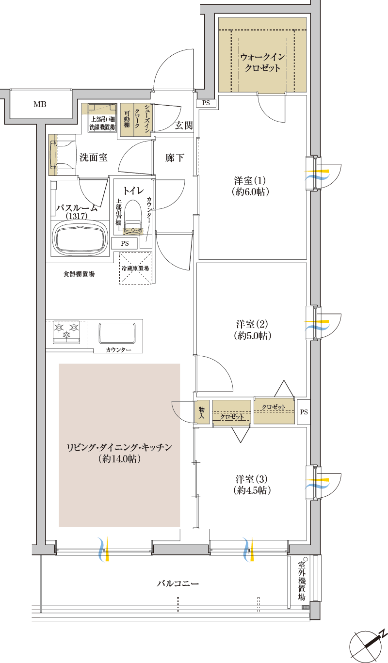 ※SIC…シューズインクローク、FR…フレキシブルルーム、WTC…ウォークスルークロゼット、WIC…ウォークインクロゼット