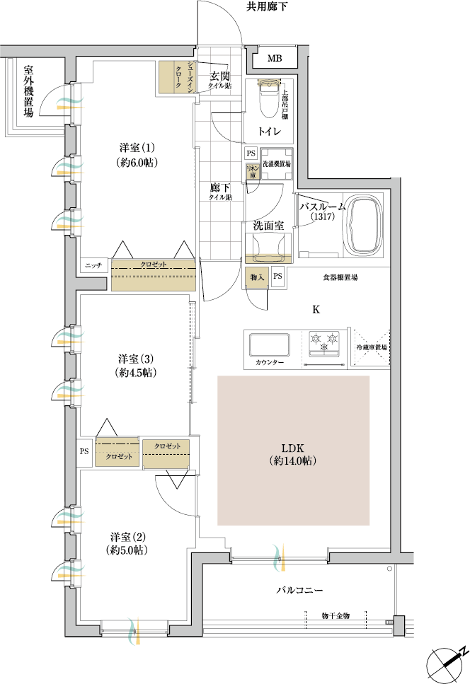 - 室外機置場面積/1.92㎡(約0.58坪)